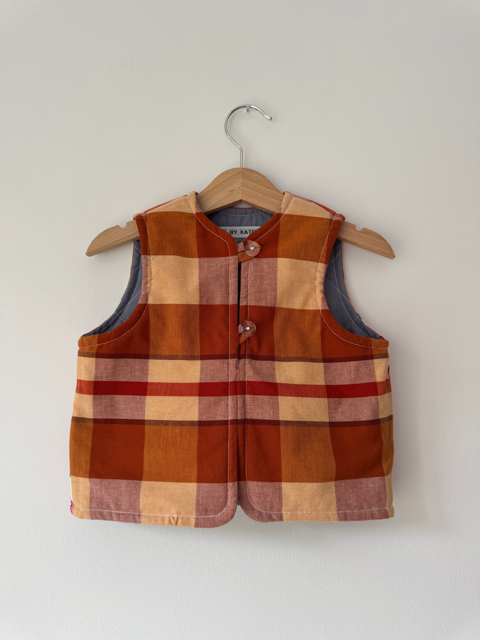 This reversible quilted gilet was inspired by the Usbourne books “That’s not my….” in this case hedgehog was the subject. It’s been made from thrifted bed sheets and scrap fabrics from my collection left overs from other upcycling projects.